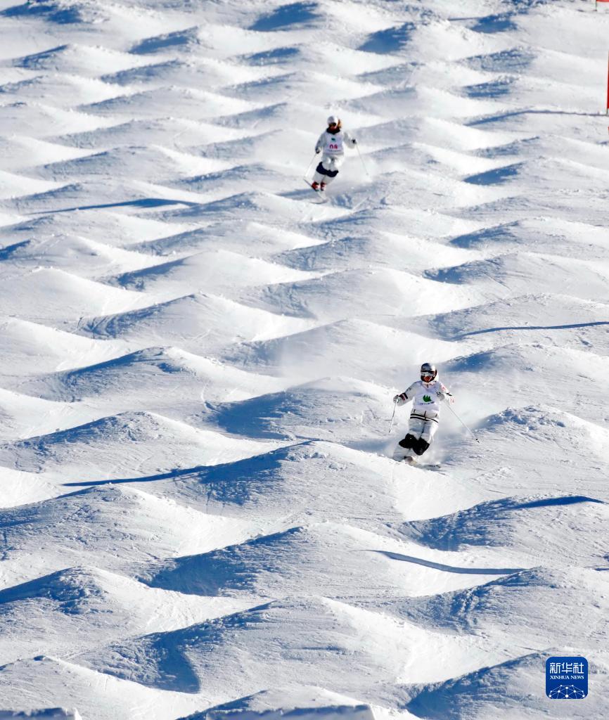 這是運(yùn)動員在張家口市崇禮區(qū)太舞滑雪場參加自由式滑雪雪上技巧比賽(2018年12月14日攝)。新華社記者 楊世堯 攝