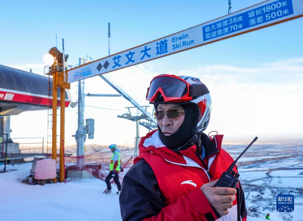 塔里哈提·散塔依在絲綢之路國際度假區(qū)滑雪場巡邏(1月10日攝)。