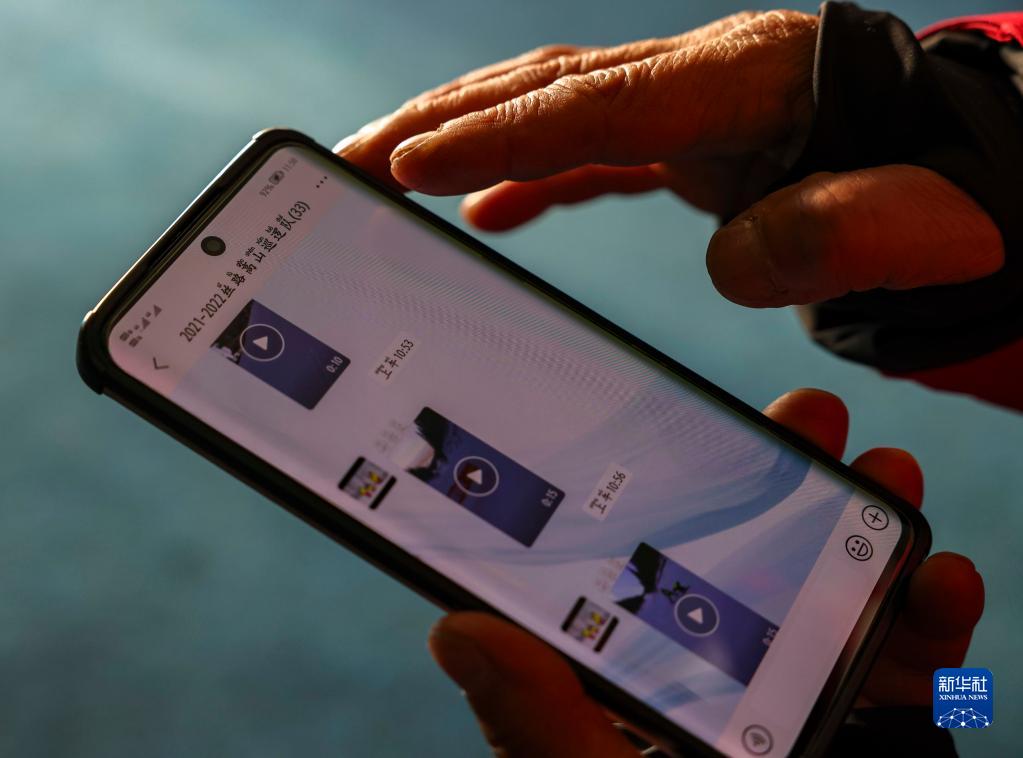 塔里哈提·散塔依在查看微信工作群內同事匯報的巡道信息(1月10日攝)。