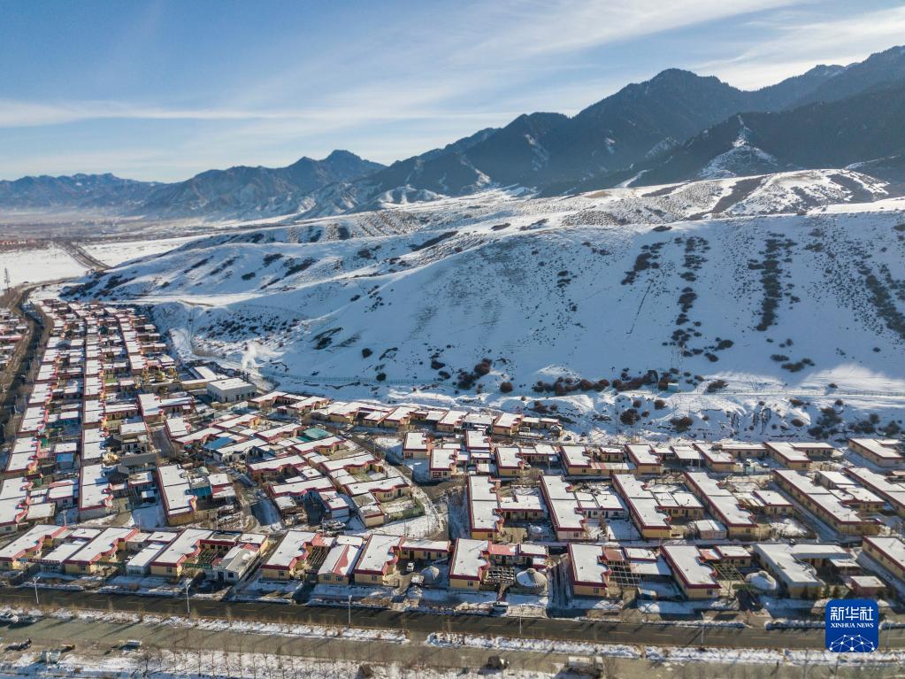 這是1月11日拍攝的新疆烏魯木齊縣水西溝鎮(zhèn)廟爾溝村塔里哈提·散塔依家所在的定居點(無人機照片)。