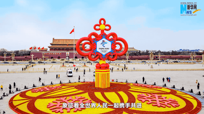 “紅色中國(guó)結(jié)設(shè)立在天安門(mén)廣場(chǎng),與天安門(mén)城樓呼應(yīng),和周?chē)h(huán)境協(xié)調(diào)一致,將春節(jié)的喜慶氛圍與冬奧盛會(huì)完美結(jié)合”,藍(lán)海浪解釋說(shuō)。
