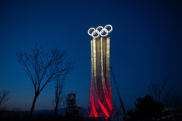 這是1月26日拍攝的亮燈的海陀塔。北京冬奧會(huì)標(biāo)志性景觀建筑“海陀塔”于本月25日在北京延慶正式竣工亮相。該建筑在120米塔頂裝設(shè)巨型奧運(yùn)五環(huán)標(biāo)志,成為公眾臨近延慶賽區(qū)、經(jīng)行京張高鐵線或京禮高速線時(shí)一道靚麗的風(fēng)景。(新華社記者陳鐘昊攝)