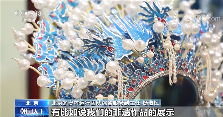 北京冬奧村運行團隊綜合服務(wù)副主任 楊敬楓:最受運動員和隨隊官員喜歡的是特許經(jīng)營店,還有“文化中國”展示區(qū)。特許經(jīng)營店里面有服裝鞋包、文化用品、紀念徽章等等,在“文化中國”里有非遺作品的展示。