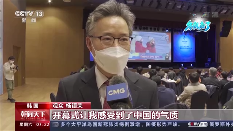 韓國(guó)觀眾 楊鎮(zhèn)榮:開(kāi)幕式讓我感受到了中國(guó)的氣質(zhì),規(guī)模宏大,也感受到了張藝謀導(dǎo)演高超的藝術(shù)造詣??傊?,這充滿魅力的開(kāi)幕式讓我印象深刻,難以忘懷。希望此次北京冬奧會(huì)能(鼓舞人們)戰(zhàn)勝疫情,突破難關(guān)。