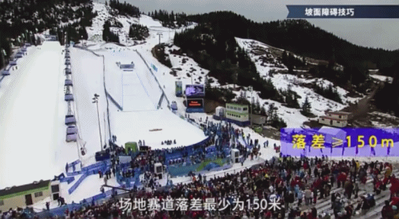 坡面障礙技巧場地由一系列障礙、跳臺、桿、平臺等構成,場地賽道落差最少為150米,平均坡度在12度以上。北京2022年冬奧會的賽道上設有3個跳臺,運動員可以選擇在每個跳臺上表演不同的轉體完成滑行。