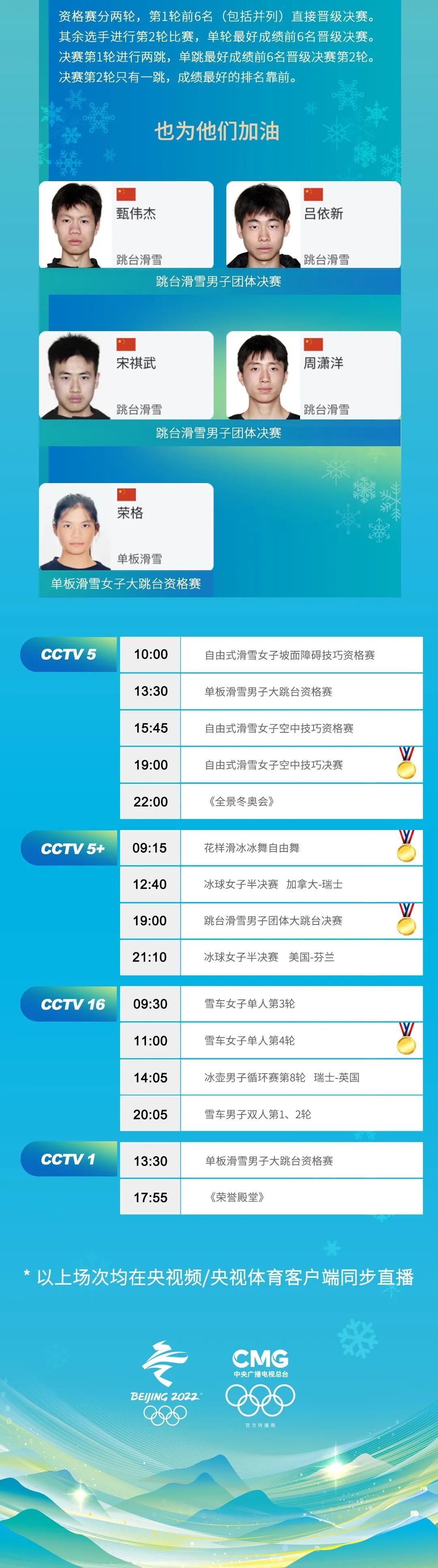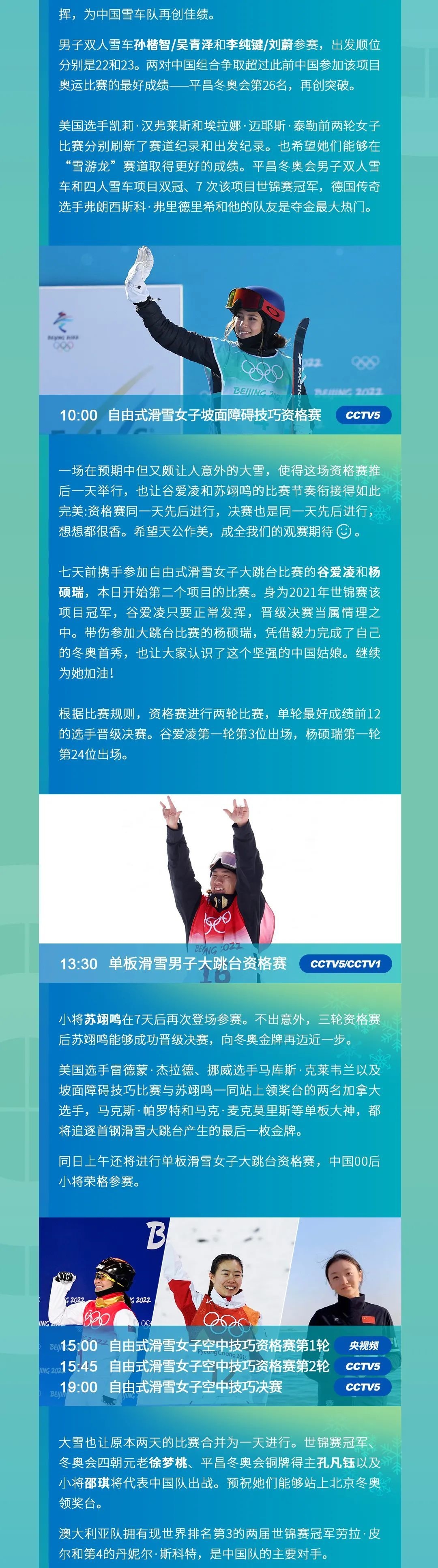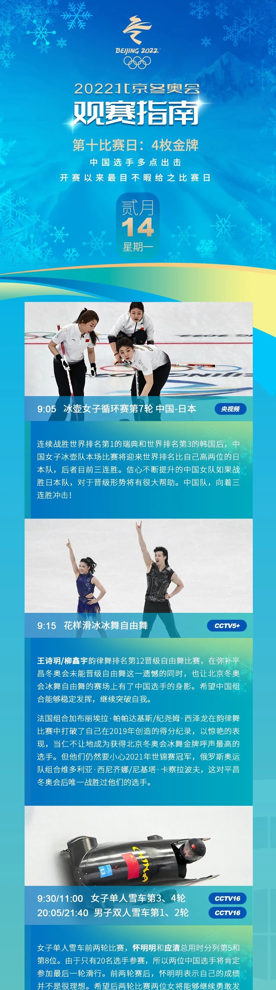 14日北京冬奧會賽程日歷↓