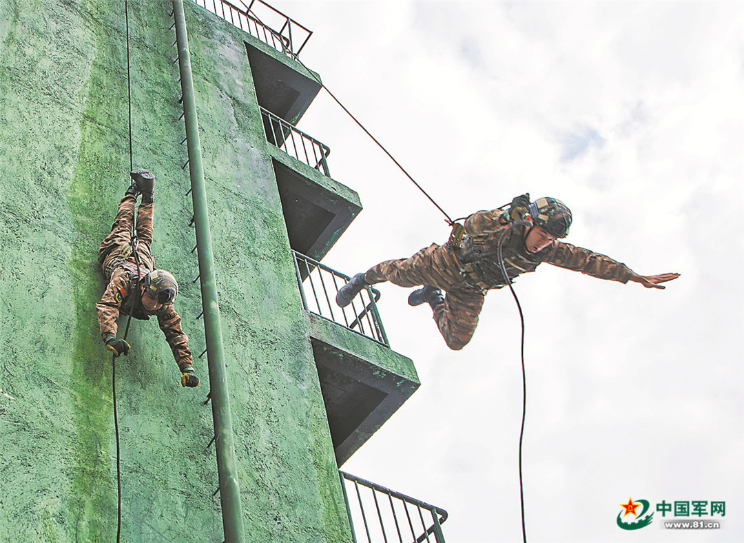 武警賀州支隊特戰(zhàn)隊員進行訓練。張畢海攝