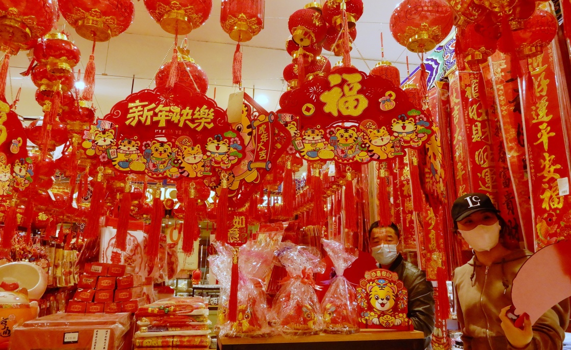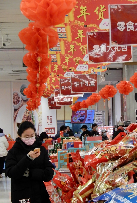 1月5日,市民在北京市朝陽區(qū)一家超市選購春節(jié)裝飾品。新華社記者李欣攝