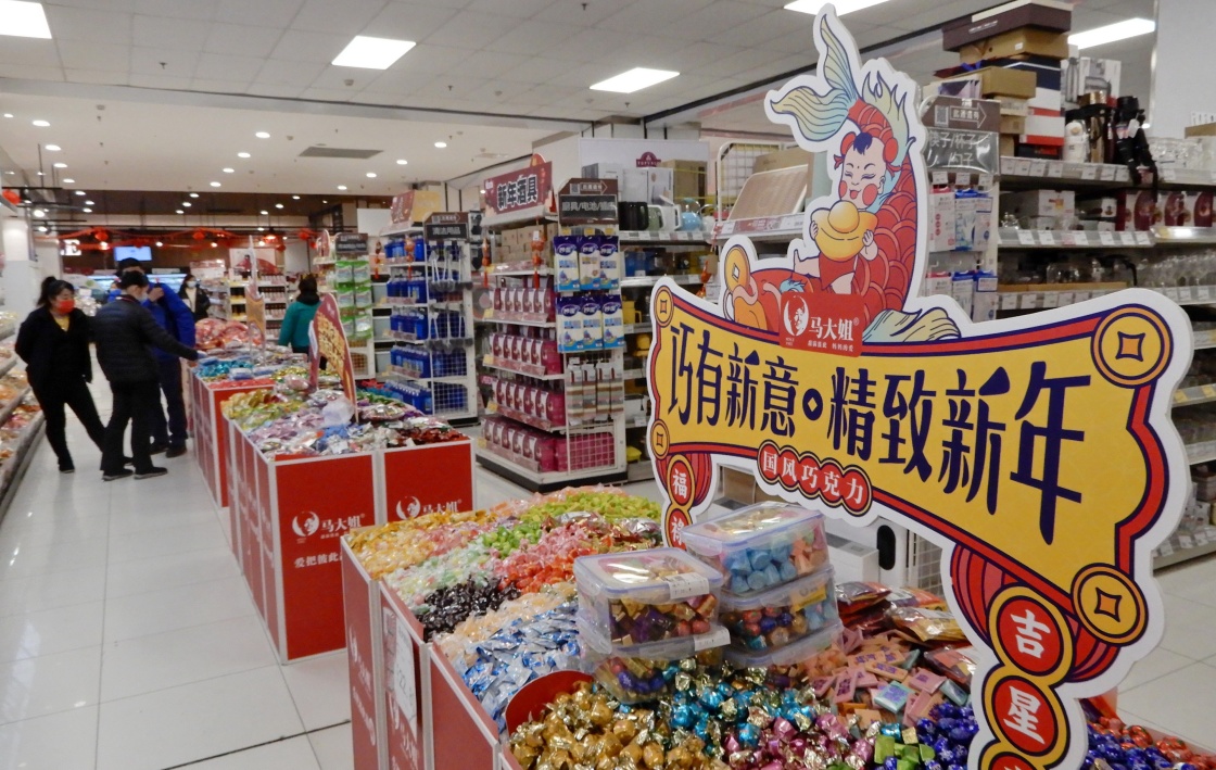 春節(jié)臨近,北京市各大商場超市內(nèi)張燈結(jié)彩年味漸濃,來自各個(gè)省市區(qū)的各類特色產(chǎn)品紛紛上架,極大地豐富了首都節(jié)日市場。