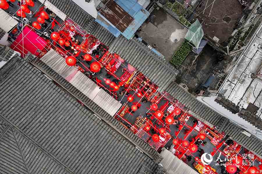 人民網(wǎng)合肥1月22日電(記者苗子?。┐汗?jié)將至,年味正濃。1月21日下午,合肥市城隍廟年貨市場熱鬧非凡。