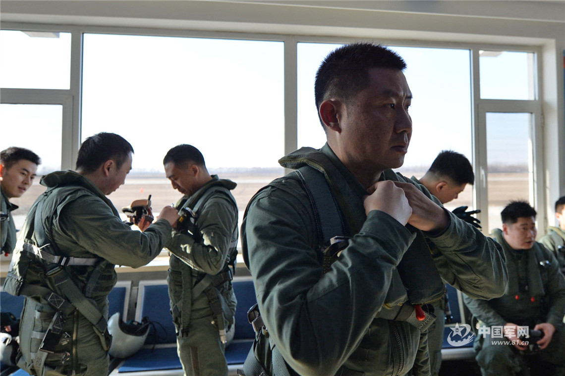 李凌正在穿戴飛行裝具。在很多人看來他就是“王牌”。訓(xùn)練中,他希望戰(zhàn)友能向自己發(fā)起挑戰(zhàn),在對抗中鍛造更多“王牌”。余紅春 攝