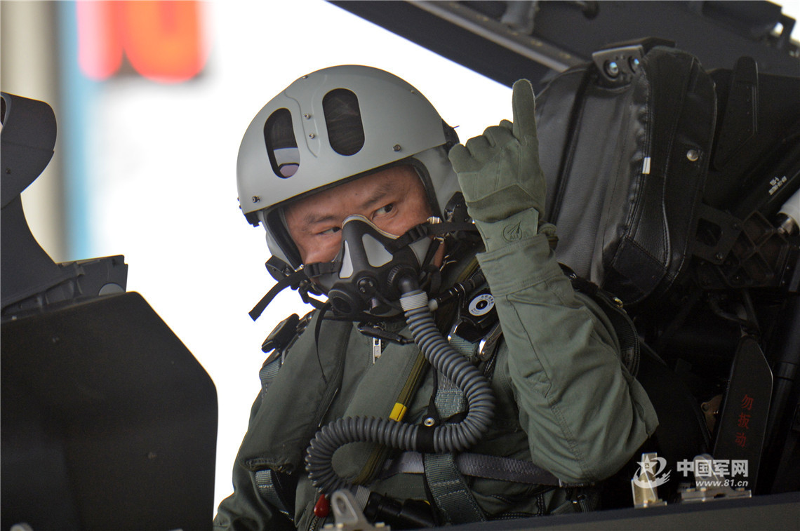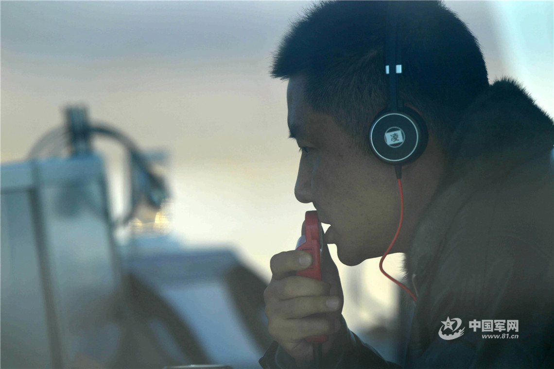 座艙內(nèi),李凌用手勢和機(jī)務(wù)官兵進(jìn)行溝通。余紅春 攝