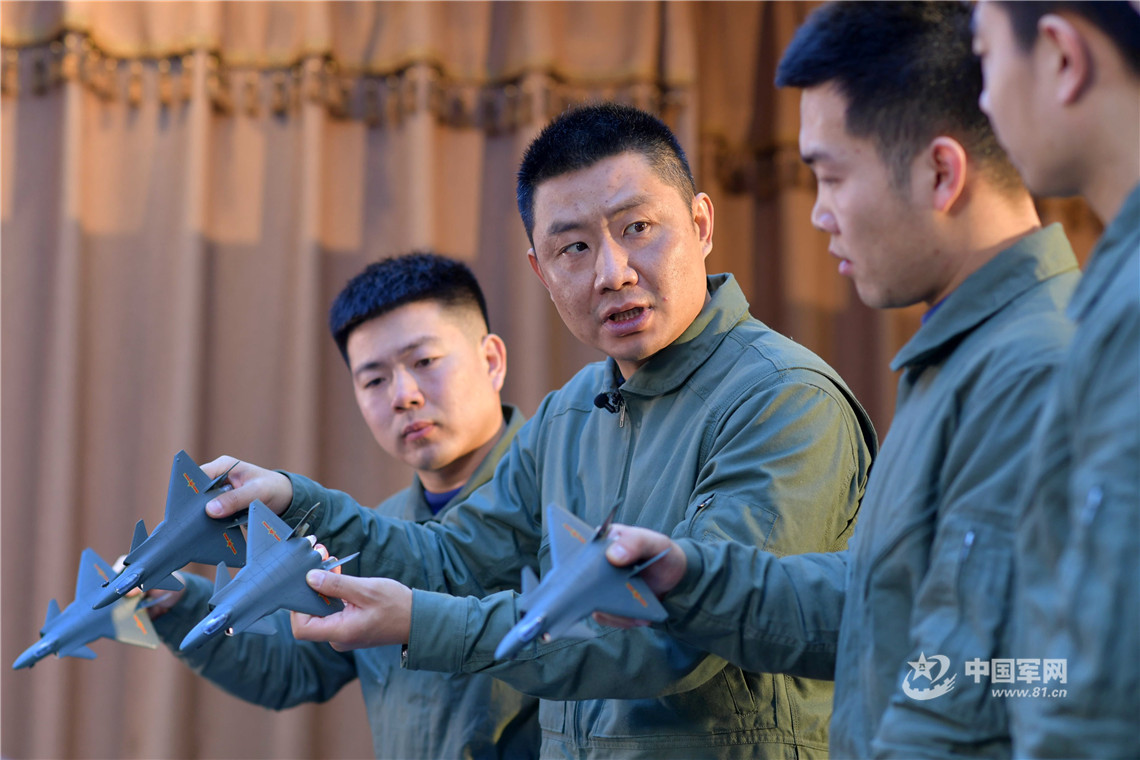 空戰(zhàn)歸來,李凌在講評室內(nèi)反思總結(jié)。余紅春 攝
