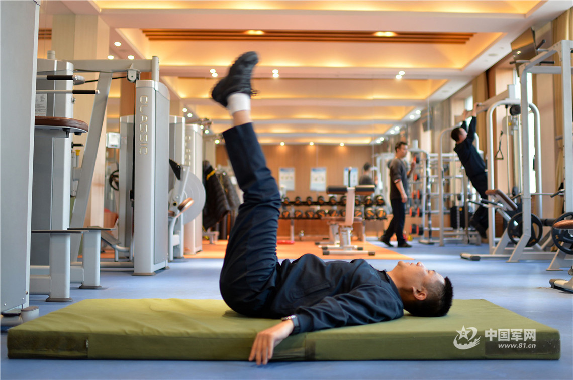 健身房內(nèi),李凌正在進(jìn)行體能訓(xùn)練。作為戰(zhàn)斗機(jī)飛行員,大載荷訓(xùn)練、長航時飛行已是家常便飯,需要過硬的體能支撐。沒有飛行任務(wù)時,健身房內(nèi)常常能看到他鍛煉的身影。余紅春 攝