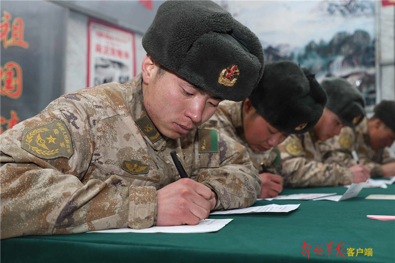 在寒風(fēng)凜冽的訓(xùn)練場,股長李程抱著一沓沓信件向官兵們走來,把這些冬日里溫暖的祝福,一封一封發(fā)放到官兵手中。