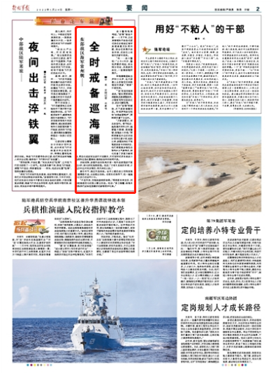 戰(zhàn)斗警報(bào)輪番響起,“敵情”接連不斷……1月下旬,正在某海域執(zhí)行戰(zhàn)備巡邏任務(wù)的東部戰(zhàn)區(qū)海軍某驅(qū)逐艦支隊(duì)常州艦,結(jié)合任務(wù)展開戰(zhàn)備訓(xùn)練,在戰(zhàn)位上迎接農(nóng)歷新年到來。