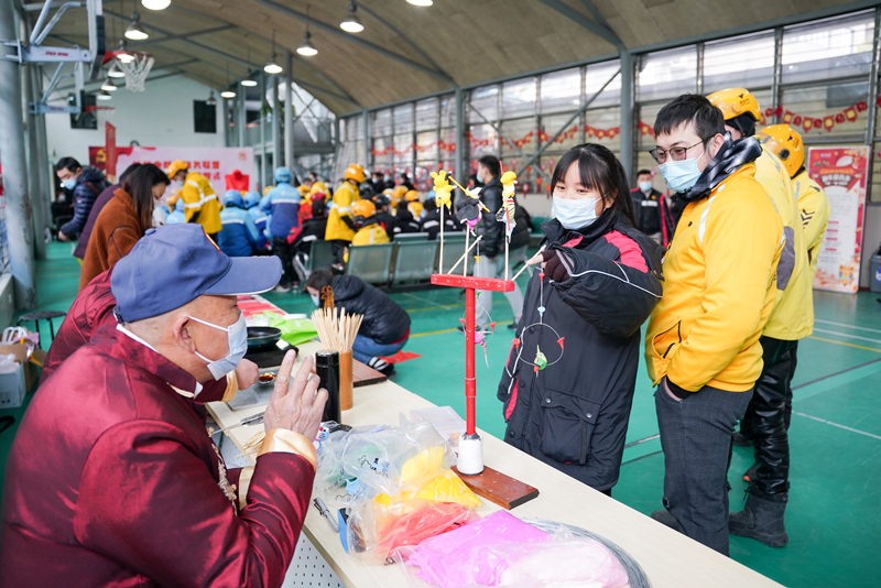 “就地過大年 溫暖不缺席”游園會活動上,糖畫、捏面人、紅包拓印、寫福字……吸引了轄區(qū)內(nèi)百余名外賣騎手、快遞小哥陸續(xù)參與,感受新年氣氛。新華網(wǎng) 徐昌敏 攝