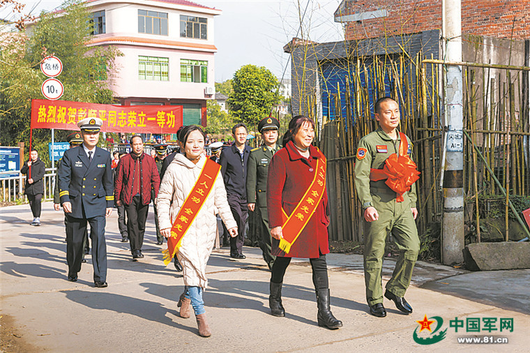 春節(jié)前夕,海軍艦載航空兵某部會(huì)同地方相關(guān)部門,將一份份立功喜報(bào)送到軍人家中——