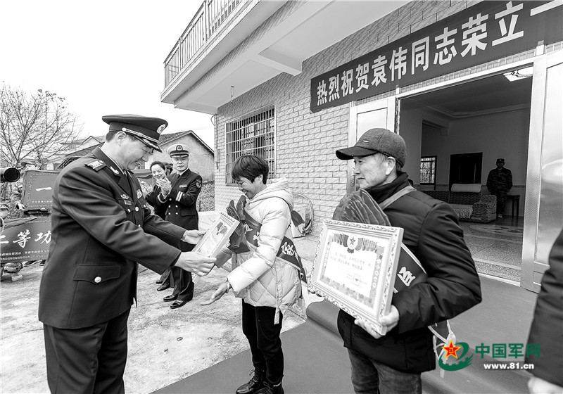 一天前,他接到社區(qū)電話,說軍地領導將帶隊把袁偉的立功喜報送到家里。放下電話,袁先國激動地抱起小侄子使勁親了幾口。而喜訊也如同長了翅膀一樣,很快傳遍他生活的湖南省常德市鼎城區(qū)牛鼻灘鎮(zhèn)。