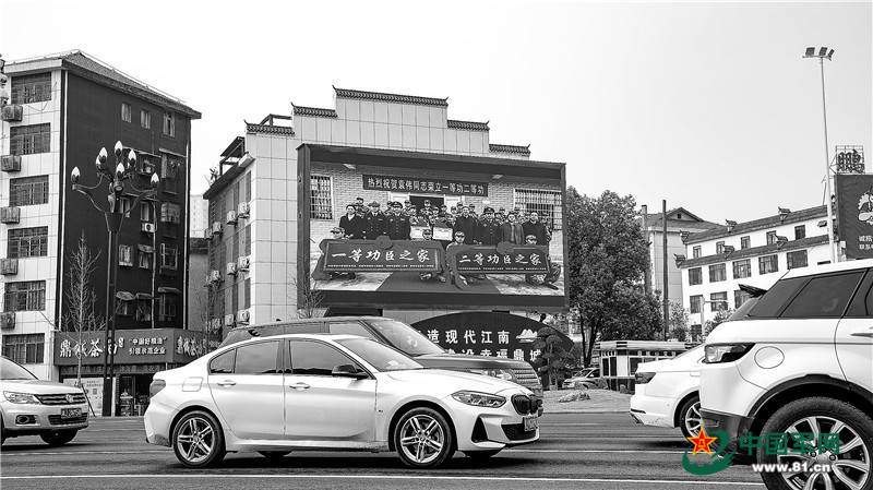 湖南省常德市街頭滾動播放功臣事跡的電子廣告屏幕,猶如一枚枚“軍人榮譽徽章”在城市中閃耀。劉志強攝