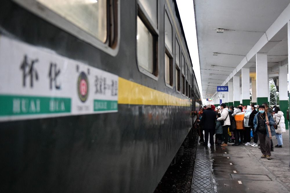 1月26日,旅客在麻陽站乘車。 新華社記者 陳振海 攝