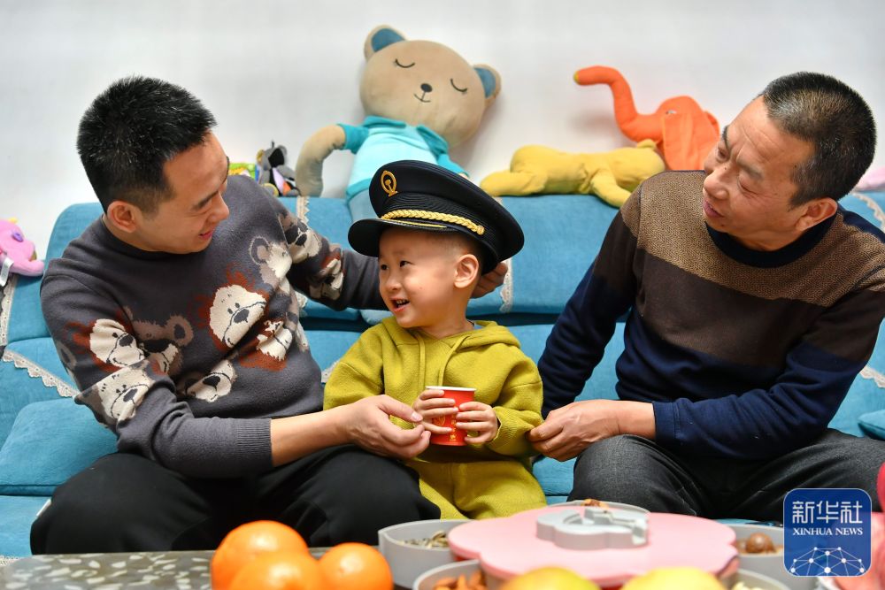 ↑1月25日,李太紅(右)和兒子、孫子在一起。