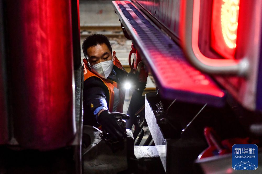 ↑1月25日,李太紅在做發(fā)車前的準(zhǔn)備工作。