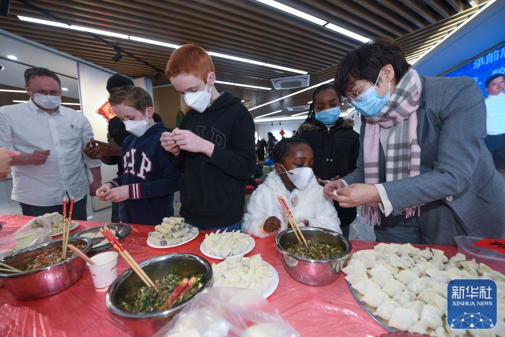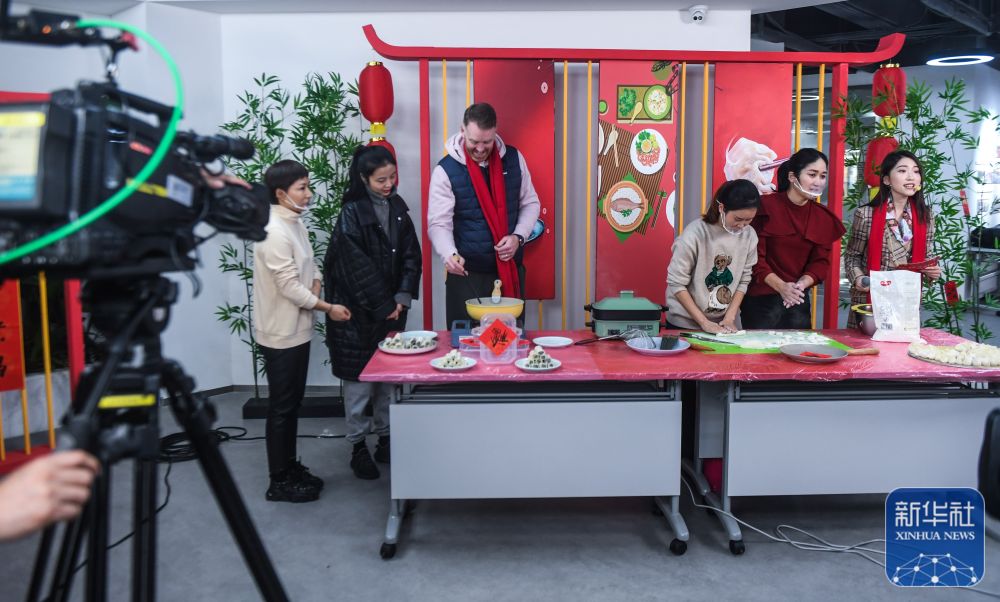 ↑1月26日,在中泰街道工作和生活的外籍居民在“云上村晚”活動(dòng)現(xiàn)場(chǎng)學(xué)習(xí)包餃子。