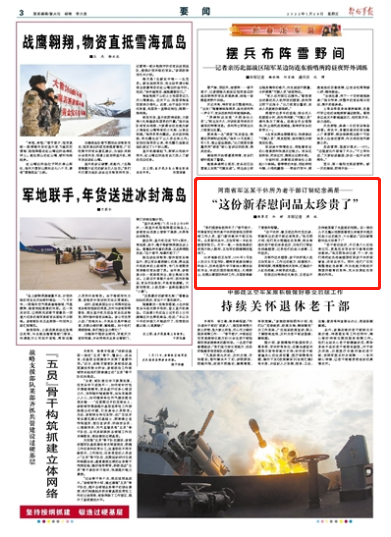 收到這份特殊的禮物后,王老迫不及待地觀看了光盤里的視頻。在一旁的兒子王鷹從視頻里看到父親曾多次提及的戰(zhàn)斗過的地方,十分感動(dòng):“這份新春慰問品太珍貴了!”