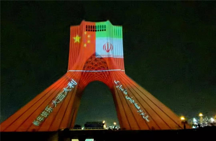 伊朗首都地標(biāo)點(diǎn)亮“中國(guó)紅”。(圖源:中國(guó)駐伊朗大使館)