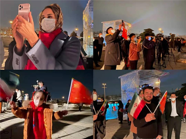 中國(guó)和伊朗國(guó)歌在廣場(chǎng)上回響,兩國(guó)國(guó)旗徐徐鋪陳開來(lái),相互映襯。用漢語(yǔ)、波斯語(yǔ)寫的“新年快樂(lè)大吉大利”、“熱烈慶祝中伊建交50周年”、“祝愿北京冬奧會(huì)成功舉辦”、“文明古國(guó)伊朗歡迎你”等標(biāo)語(yǔ)溫暖人心。中國(guó)春聯(lián)、萌虎圖案、北京冬奧會(huì)和冬殘奧會(huì)會(huì)徽等交替投映在塔身,循環(huán)播放的北京冬奧宣傳片點(diǎn)亮德黑蘭夜空。