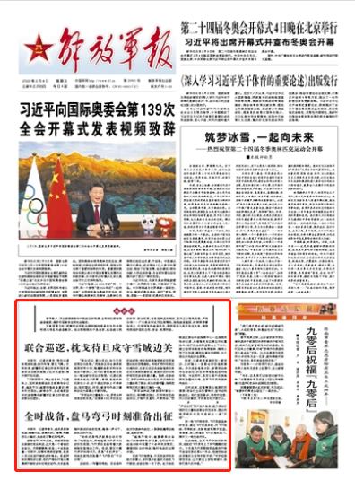 萬家團圓之時,更需要全軍官兵樹牢隨時準備打仗的思想和枕戈待旦的戰(zhàn)備意識。在白雪皚皚的千里邊防,戍邊戰(zhàn)士爬冰臥雪、聯(lián)合巡邏;在祖國神圣的領(lǐng)空,藍天衛(wèi)士駕機巡航、嚴陣以待……廣大官兵牢記習主席囑托,加強戰(zhàn)備值班,時刻保持箭在弦上、引而待發(fā)的戰(zhàn)備狀態(tài),確保祖國人民平安過大年,確保有效維護國家主權(quán)、安全、發(fā)展利益。