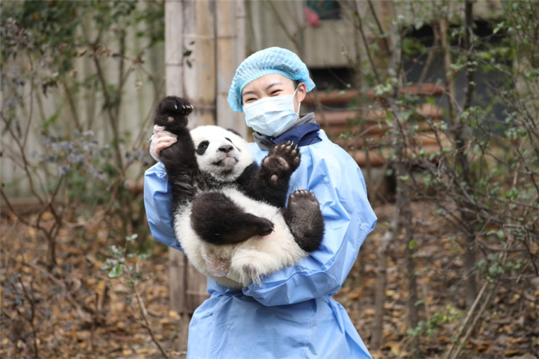 成都大熊貓繁育研究基地2021級(jí)熊貓寶寶通過(guò)網(wǎng)絡(luò)“云亮相”的方式,慶祝北京冬奧會(huì)圓滿舉行。(成都大熊貓繁育研究基地供圖)