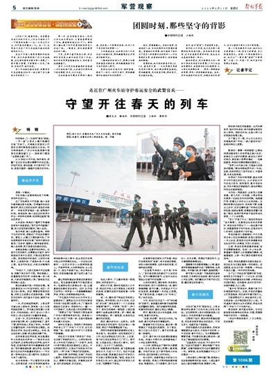 春運的背后,是無數(shù)像冼文杰一樣的子弟兵共同堅守的背影:廣州火車站的武警哨點、冰雪封凍的5592觀察哨、大山深處的保障倉庫……那是一排排挺拔的背影,那是一張張剛毅的面龐。或許,你不知道他們的名字,但越過他們的肩頭,你可以看到萬家燈火和萬家團圓。