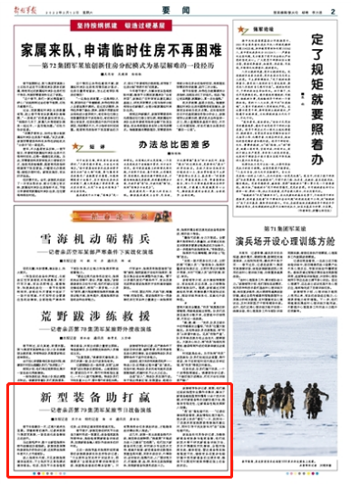 該旅領(lǐng)導(dǎo)告訴記者,前期,他們通過組織指控專業(yè)操作手集訓(xùn),解決了新裝備超低溫預(yù)熱慢等10余個(gè)技術(shù)問題;針對新裝備特點(diǎn)創(chuàng)新偽裝方法、提高信號穩(wěn)定性,讓新裝備性能發(fā)揮漸入佳境。