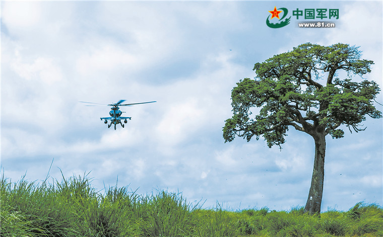 “坐穩(wěn),馬上就要起飛了!”坐在后艙的飛行員鄭丹提醒記者。話音剛落,直升機(jī)已離地?cái)?shù)十米,來(lái)到一個(gè)更加廣闊的視界——攻擊直升機(jī)、運(yùn)輸直升機(jī)組成的飛行編隊(duì),滿載著航炮、導(dǎo)彈、火箭彈等各型武器,從一樹(shù)之高沖向???,向著目標(biāo)海域發(fā)起超低空突擊。