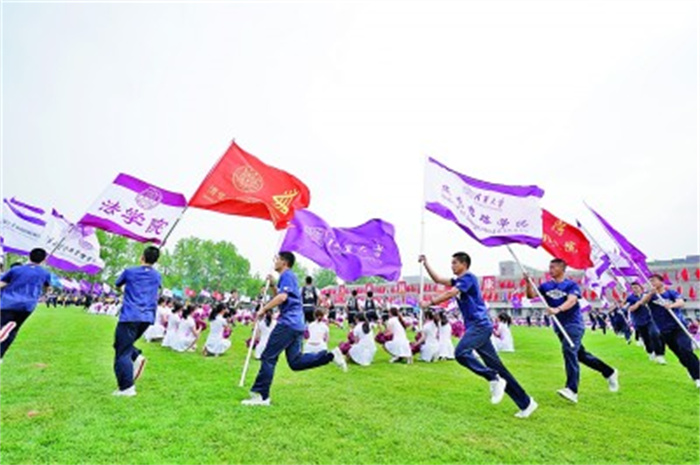 清華大學(xué)學(xué)生在馬約翰杯學(xué)生田徑運(yùn)動(dòng)會(huì)開(kāi)幕式上表演。新華社發(fā)