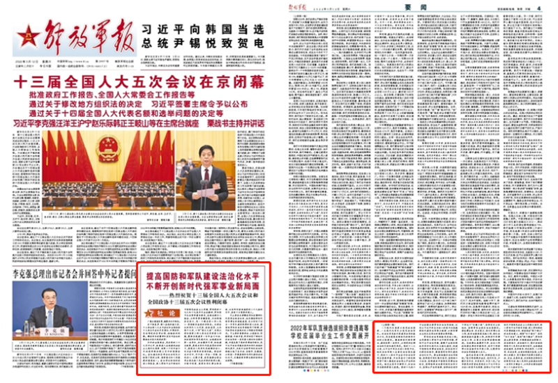 在萬(wàn)物復(fù)蘇、催人奮進(jìn)的春天里,十三屆全國(guó)人大五次會(huì)議和全國(guó)政協(xié)十三屆五次會(huì)議不負(fù)重托、不辱使命,完成預(yù)定的各項(xiàng)議程,相繼勝利閉幕。解放軍和武警部隊(duì)官兵對(duì)會(huì)議的圓滿成功表示熱烈祝賀!