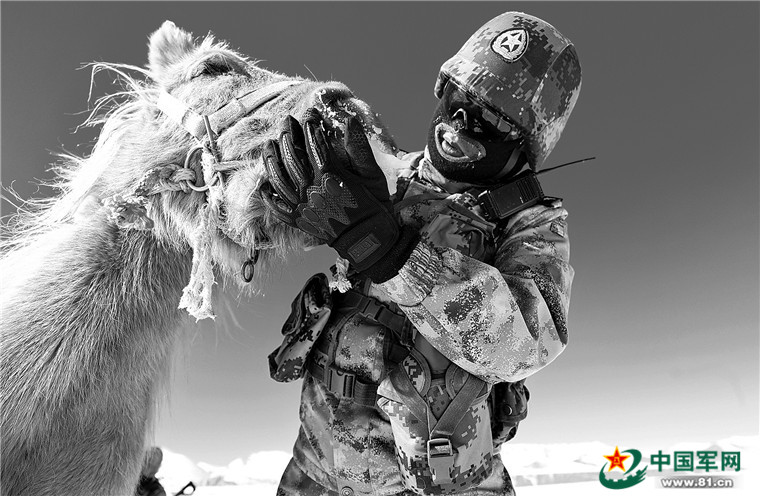 駐阿里某連一名戰(zhàn)士和他的“無言戰(zhàn)友”抵達點位。