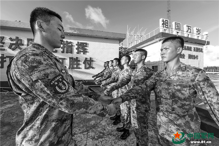新戰(zhàn)士登上南沙永暑礁,進行隊列訓練。