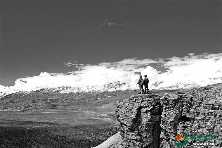 昆木加哨所官兵,巡邏途中眺望邊防線。