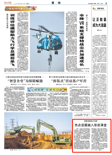 “把青年官兵感興趣的熱點話題融入思政課堂,提升授課的吸引力和針對性,是推動思想政治教育走深走實的有效舉措?!痹搱F領導介紹,他們認真學習全軍思想政治教育創(chuàng)新集訓的相關精神,主動把準青年官兵的思想脈搏,積極創(chuàng)新教育方式,努力激發(fā)思政課堂活力。該團在廣泛調研的基礎上,探索“眾籌式”教育模式,引導思想活躍、授課能力強的官兵自主設計教育課堂,先后推出4批次40余節(jié)課作為教育自選“菜單”,供基層官兵“點餐”。