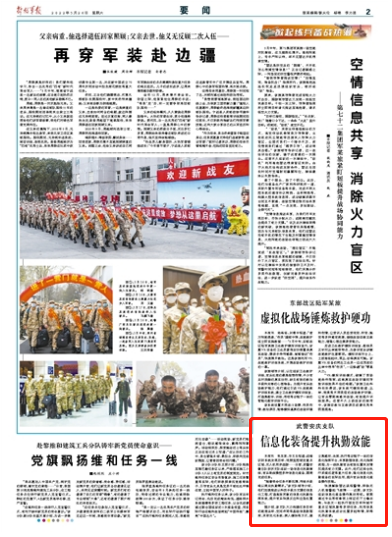 據(jù)介紹,該支隊(duì)大力構(gòu)建任務(wù)目標(biāo)的地理坐標(biāo)、空間布局等基礎(chǔ)信息數(shù)據(jù)庫,采取優(yōu)化系統(tǒng)、嵌入模塊等方式,建立集感知、決策、執(zhí)行等功能于一體的信息化指揮平臺,共享數(shù)據(jù)信息,優(yōu)化指揮流程,為一線執(zhí)勤官兵有效處置突發(fā)情況提供有力支撐。此外,他們還結(jié)合執(zhí)行武裝巡邏等重大任務(wù),強(qiáng)化信息化執(zhí)勤裝備的實(shí)際運(yùn)用,提升官兵信息化裝備操作技能。