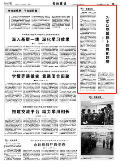 開放的社會沒有封閉的軍營。隨著軍營網(wǎng)絡(luò)快速發(fā)展,上聯(lián)軍委機關(guān)、下通基層班排的強軍網(wǎng),逐漸成為官兵工作、生活、娛樂的重要平臺。借助軍營網(wǎng)絡(luò),將云計算、大數(shù)據(jù)、物聯(lián)網(wǎng)等新技術(shù)與日常管理、訓(xùn)練等融合創(chuàng)新,能帶來1+1>2的可喜效果。網(wǎng)絡(luò)發(fā)展到哪里,黨建工作就要覆蓋到哪里。工作實踐中,各級黨組織可以嘗試開辦“云黨?!保丫€下與線上、“面對面”與“鍵對鍵”結(jié)合起來,使黨建工作擴展到網(wǎng)絡(luò)空間,實現(xiàn)由傳統(tǒng)向現(xiàn)代、由封閉向開放、由單一向多維的轉(zhuǎn)變,使傳統(tǒng)黨建迸發(fā)新的活力。