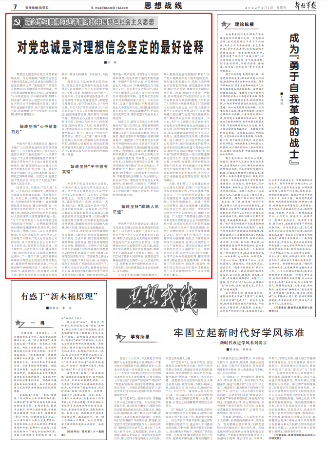 回望歷史,源自馬克思主義科學(xué)真理的共產(chǎn)黨人信仰信念,彰顯著鮮亮的忠誠底色;面向未來,我們要堅定不移地做馬克思主義的忠誠信奉者、堅定實踐者,繼續(xù)沿著科學(xué)真理指引的航向破浪前行。要把深入學(xué)習(xí)貫徹習(xí)近平新時代中國特色社會主義思想作為基本功,努力掌握新時代黨的創(chuàng)新理論的重大意義、科學(xué)體系、豐富內(nèi)涵、精髓要義和實踐要求,領(lǐng)會其中的立場觀點方法、道理學(xué)理哲理,用真理之力開創(chuàng)美好未來,以理想之光照亮奮斗征程。要深刻領(lǐng)會“兩個確立”的決定性意義,不斷增強(qiáng)“四個意識”、堅定“四個自信”、做到“兩個維護(hù)”,貫徹軍委主席負(fù)責(zé)制,不斷提高政治判斷力、政治領(lǐng)悟力、政治執(zhí)行力。要堅持用馬克思主義觀察時代、把握時代、引領(lǐng)時代,不斷賦予馬克思主義新的時代內(nèi)涵,讓馬克思主義在中國大地上展現(xiàn)出更強(qiáng)大、更有說服力的真理力量。