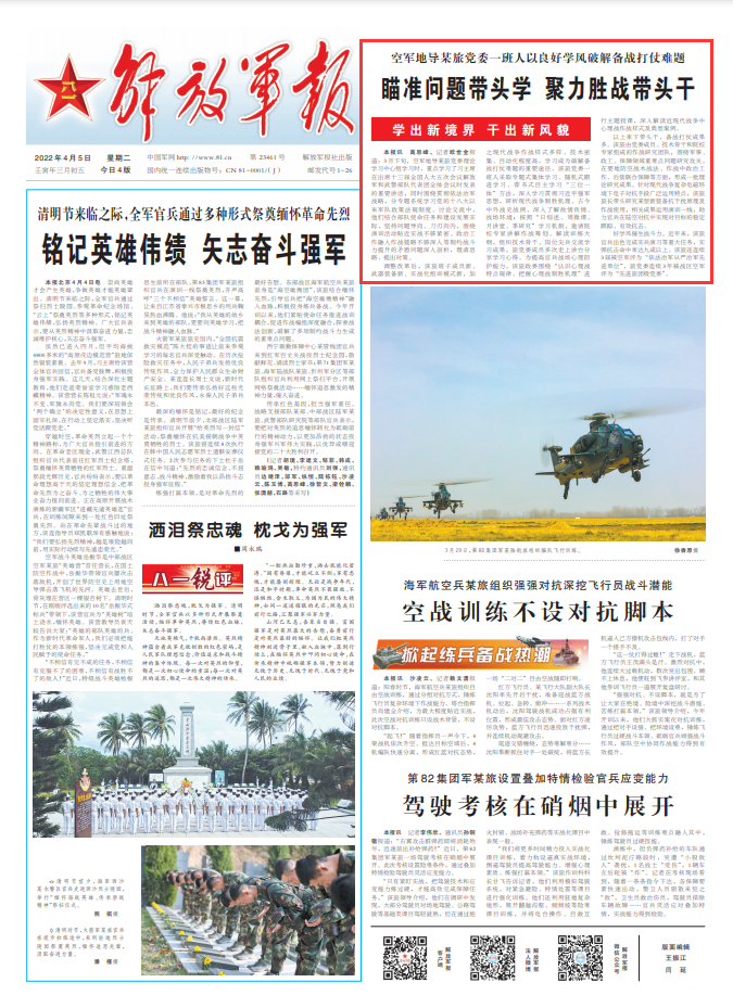 解放軍報訊 高思峰、記者歐世金報道:3月下旬,空軍地導某旅黨委理論學習中心組學習時,重點學習了習主席在出席十三屆全國人大五次會議解放軍和武警部隊代表團全體會議時發(fā)表的重要講話,同時圍繞貫徹依法治軍戰(zhàn)略,分專題系統(tǒng)學習黨的十八大以來軍隊政策法規(guī)制度。討論交流中,他們結(jié)合部隊使命任務(wù)和建設(shè)發(fā)展實際,堅持問題導向、刀刃向內(nèi),圍繞演訓活動貼近實戰(zhàn)不夠緊密、政治工作融入作戰(zhàn)鏈路不夠深入等制約戰(zhàn)斗力提升的矛盾問題深入剖析,理清思路、提出對策。