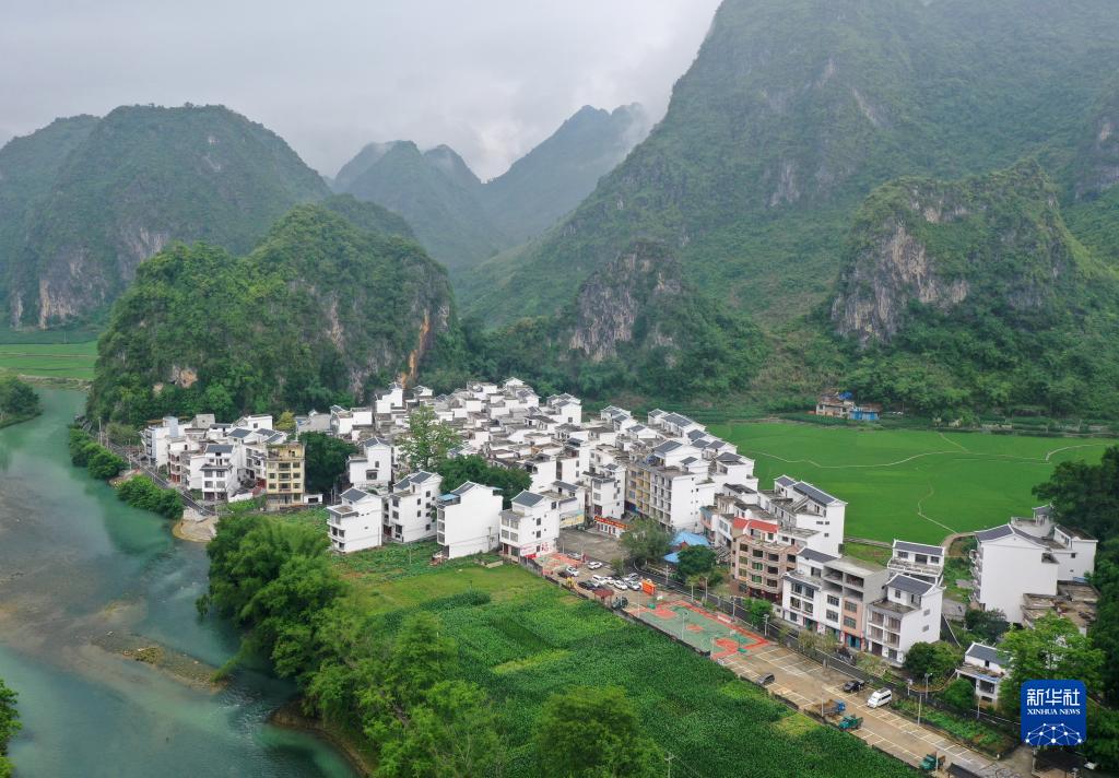 這是廣西巴馬瑤族自治縣鄉(xiāng)村風(fēng)貌(5月8日攝,無人機(jī)照片)。