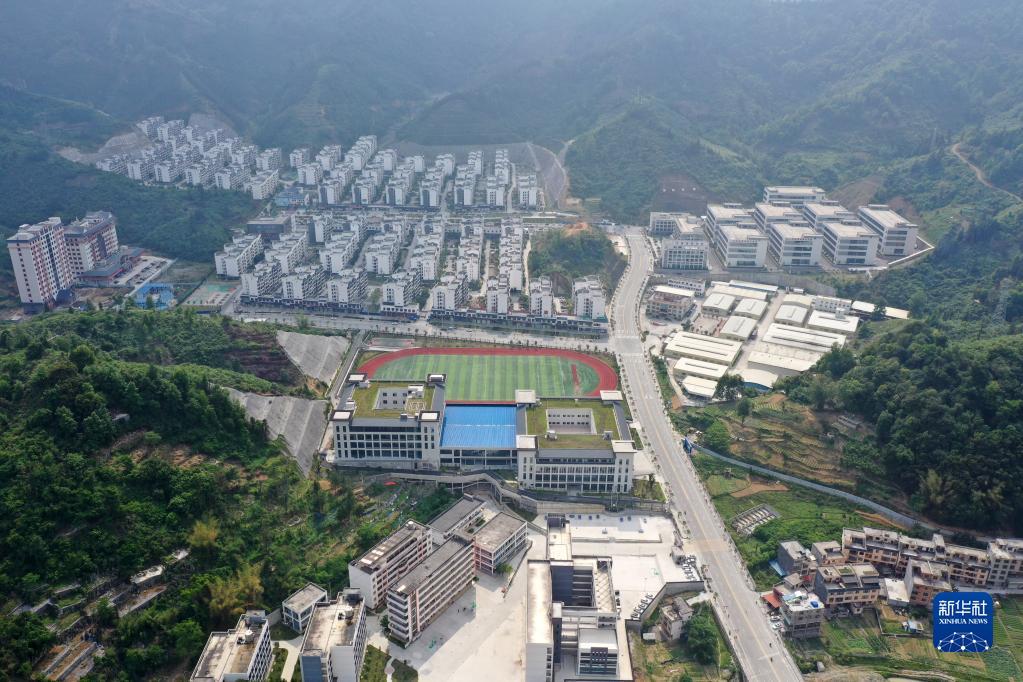 這是廣西鳳山縣扶貧移民集中安置區(qū)——鳳城鎮(zhèn)思源社區(qū)及其配套建筑設(shè)施(5月7日攝,無(wú)人機(jī)照片)。