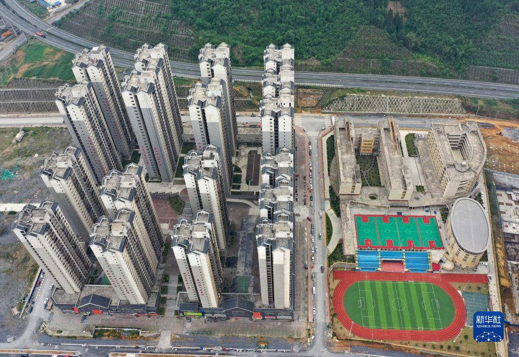 這是廣西東蘭縣易地扶貧搬遷安置新區(qū)向陽新城(5月6日攝,無人機照片)。