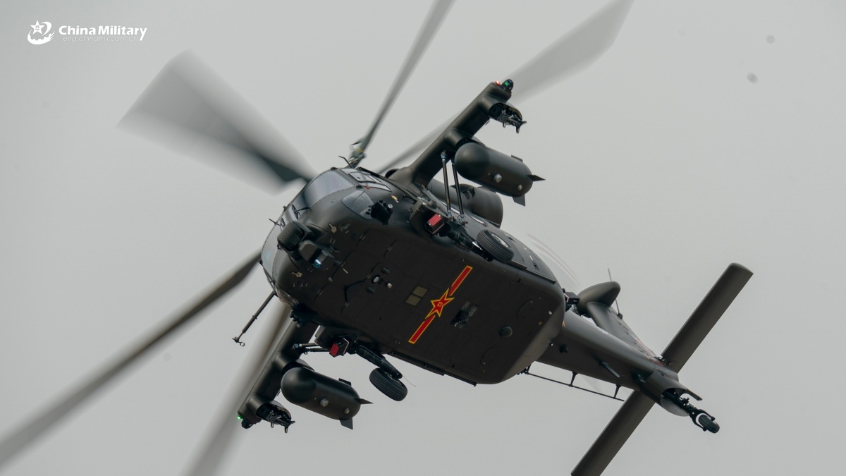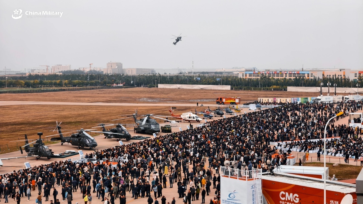 Z-10 attack helicopters and Z-20 utility helicopters attached to the Chinese PLA Army's Thunder Aerobatic Team are ready to take off for an aerobatics performance during the 7th China Helicopter Exposition on October 16, 2025. (eng.chinamil.com.cn)